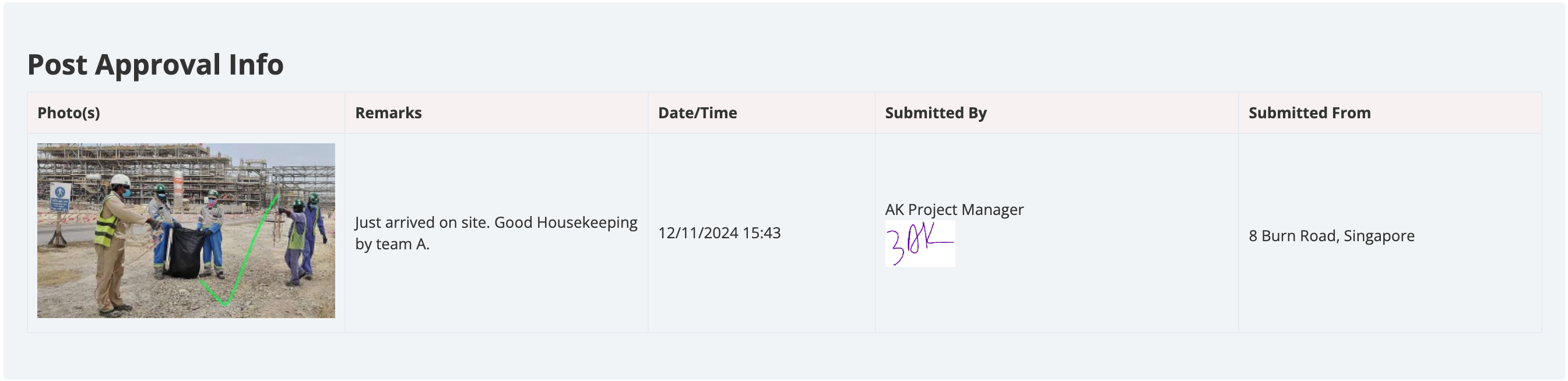Elevate your project's documentation and insight by integrating additional photos and remarks to already-approved PTWs.