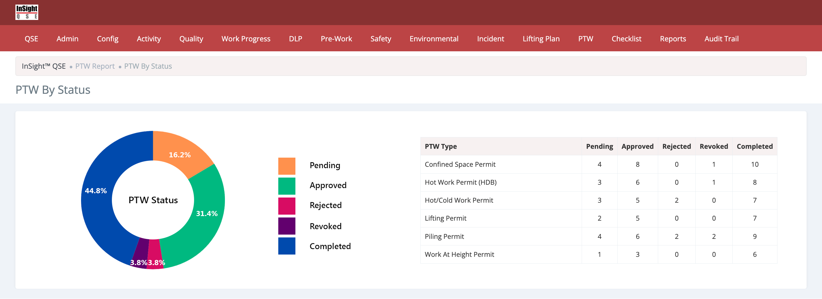 Permit-To-Work ("PTW") is a must-do for all sites on a daily basis. InSightTM QSE alleviates the current paper-based method of routing PTWs for approvals which is time-consuming and an administrative headache in having to store all paper-based PTWs properly for accountability and audit checks.